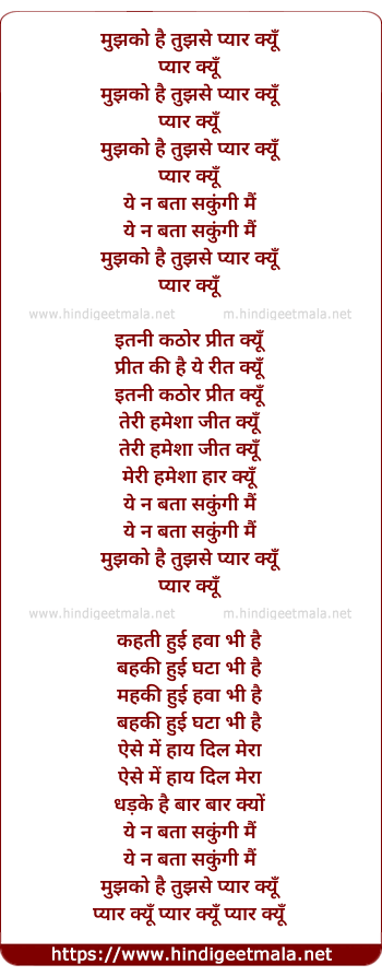 Lyrics of Mujhko Hai Tujhse Pyar Kyo (2)