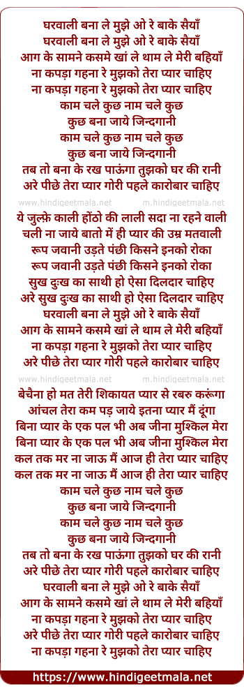 Lyrics of Mujhko Tera Pyar Chahiye - मुझको तेरा प्यार चाहिए