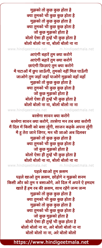 Lyrics of Mujhko To Kuch Kuch Hota Hai - मुझको तो कुछ कुछ होता है