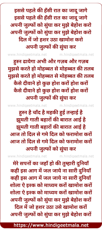 Lyrics of Mujhe Behosh Karo - मुझे बेहोश करो