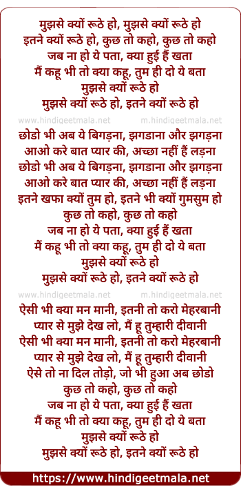 Lyrics of Mujhse Kyon Ruthe Ho - मूझसे क्यों रूठे हो
