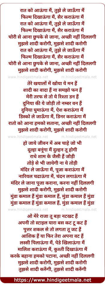 Lyrics of Mujhse Shaadi Karogi - मुझसे शादी करोगी