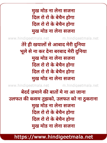 Lyrics of Mukh Mor Na Lena Sajna - मुख मोड ना लेना सजना