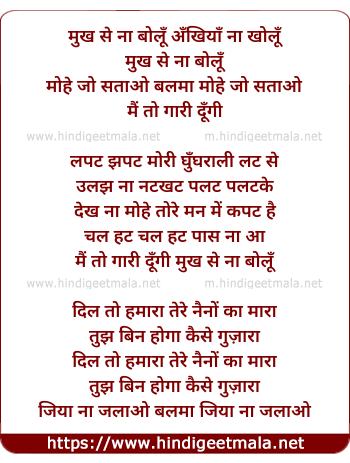 Lyrics of Mukh Se Na Bolu Ankhiya Na Kholu - मुख से ना बोलूँ अँखियाँ ना खोलूँ