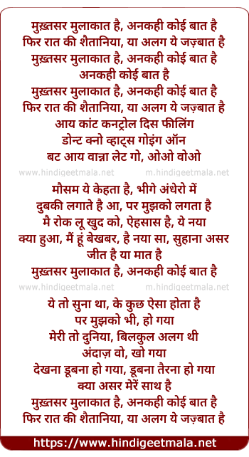 Lyrics of Mukhtasar Mulakat Hai, Ankahi Koi Baat Hai - मुख़्तसर मुलाकात है, अनकही कोई बात है