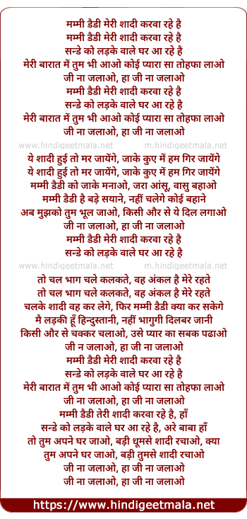 Lyrics of Mummy Daddy Meri Shaadi Karwa Rahe Hai - मम्मी डैडी मेरी शादी करवा रहे है
