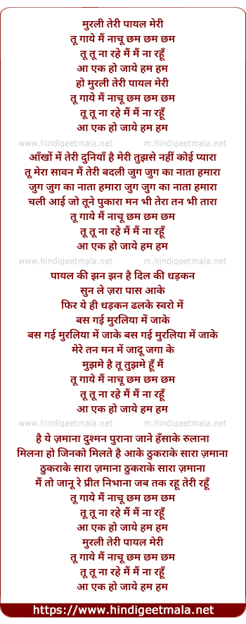 Lyrics of Murali Teri Payal Meri - मुरली तेरी पायल मेरी