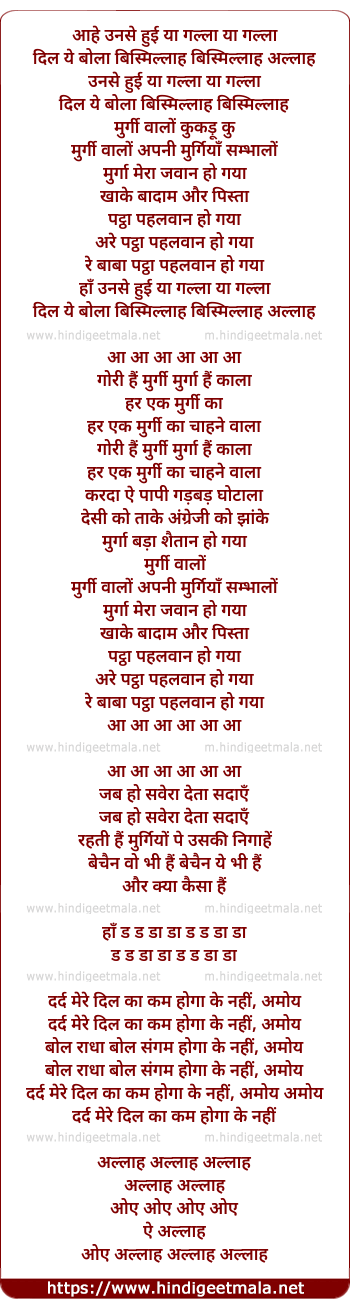 Lyrics of Murgi Walo Apni Murgian - मुर्गी वालों अपनी मुर्गियाँ