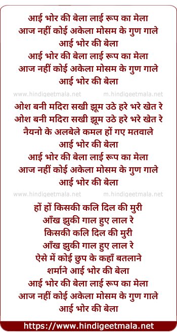 Lyrics of Aai Bhor Ki Bela - आई भोर की बेला