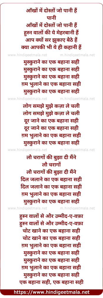 Lyrics of Muskurane Ka Ek Bahana Sahi - आँखों में दोस्तों जो पानी हैं