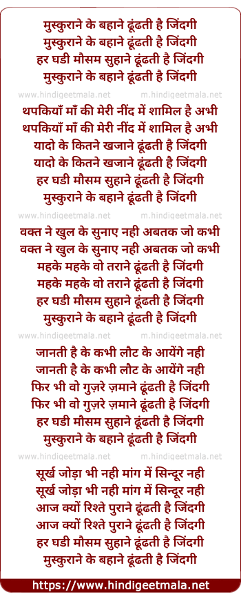 Lyrics of Muskurane Ke Bahane - मुस्कुराने के बहाने