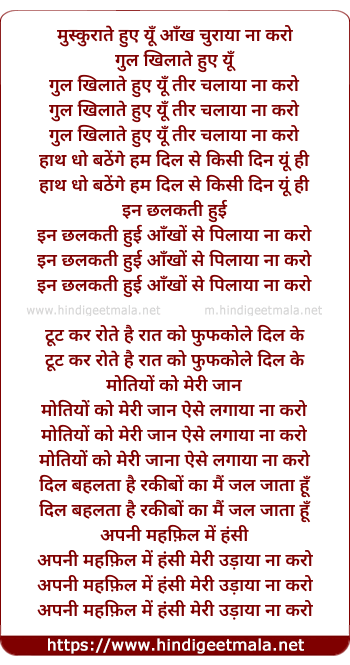 Lyrics of Muskurate Hue Yu - मुस्कुराते हुए यूँ