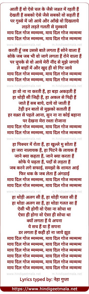 Lyrics of My Dil Goes Mmmm - माय दिल गोज म्मम्मम्म