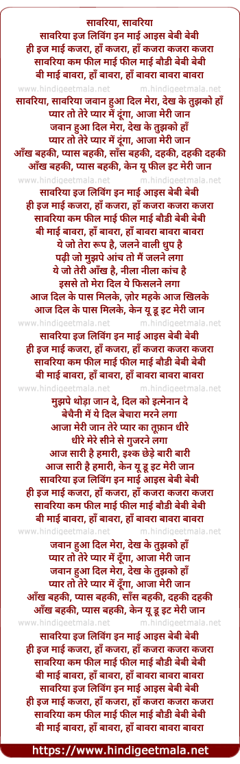 Savariya, come, feel my, feel my body, baby, baby.