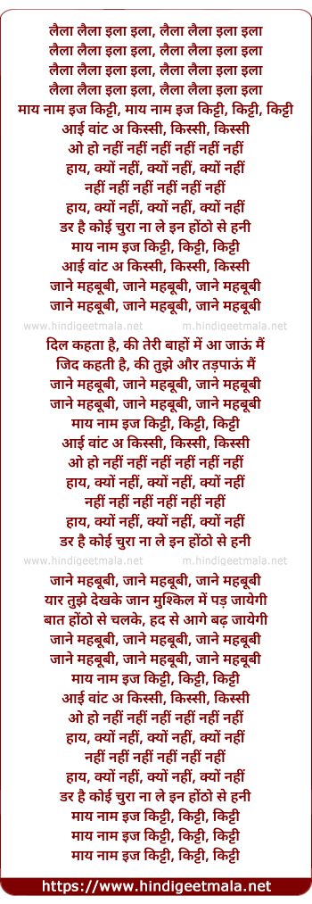 Lyrics of My Name Is Kitty - माय नाम इज किट्टी