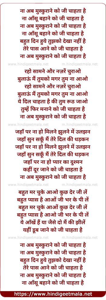 Lyrics of Na Ab Muskurane Ko Jee Chahta Hai - ना अब मुस्कुराने को जी चाहता है