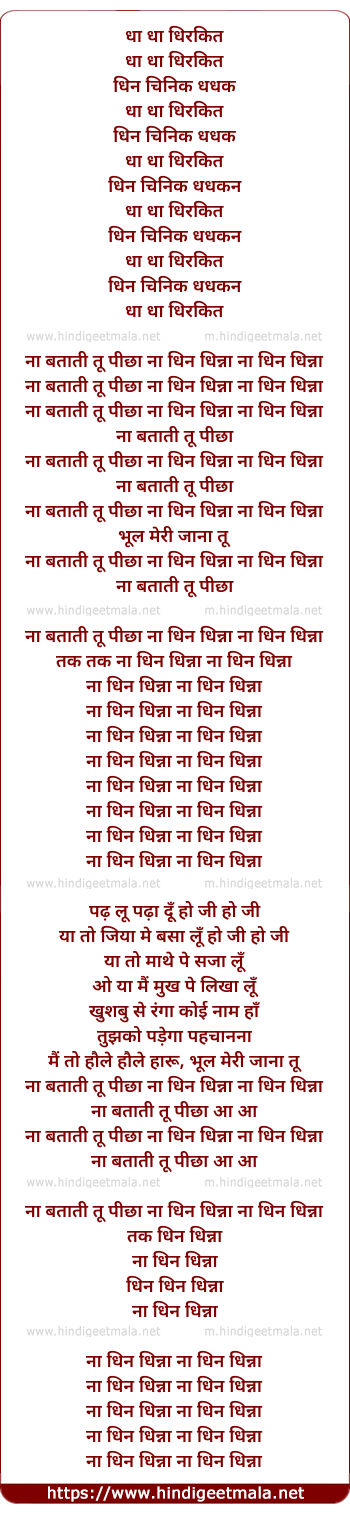 Lyrics of Na Batati Tu (Na Dhin Dhin Dhin Na) - धा धा धिरकित