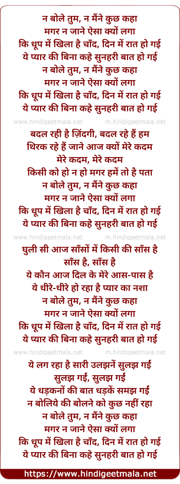 Lyrics of Na Bole Tum Naa Maine Kuchh Kaha - न बोले तुम, न मैंने कुछ कहा