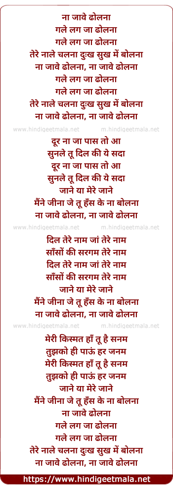 Lyrics of Na Jaave Dholna Gale Lag Ja Dholna - ना जावे ढोलना