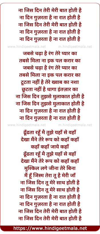 Lyrics of Na Jis Din Teri Meri Baat Hoti Hai - ना जिस दिन तेरी मेरी बात होती है