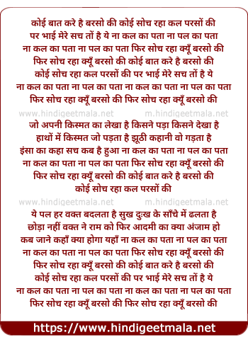 Lyrics of Na Kal Ka Pata Na Pal Ka Pata - ना कल का पता ना पल का पता