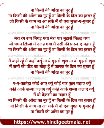 Lyrics of Na Kisi Ki Aankh Ka Noor Hu - ना किसी की आँख का नूर हूँ