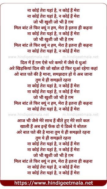 Lyrics of Na Koi Tera Yaha Hai - ना कोई तेरा यहाँ है