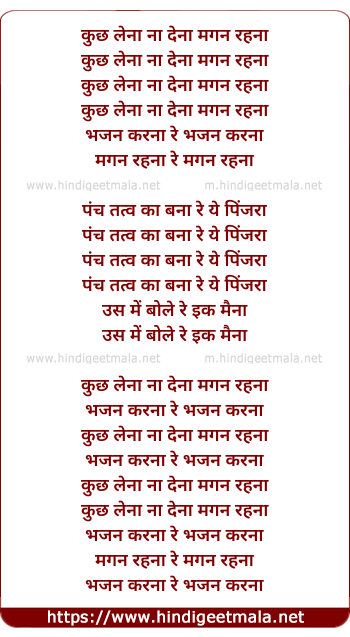 Lyrics of Na Lena Na Dena Magan Rahna - कुछ लेना ना देना मगन रहना
