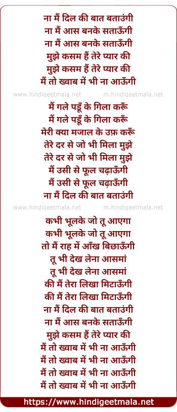 Lyrics of Na Mai Dil Ki Baat Bataungi - ना मैं दिल की बात बताउंगी