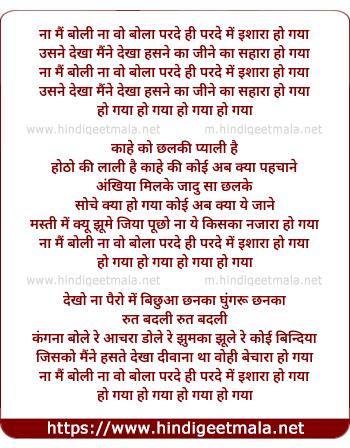 Lyrics of Na Main Boli Na Wo Bola - ना मैं बोली ना वो बोला