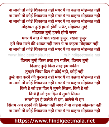 Lyrics of Na Mano To Koi Shikayat Nahi - ना मानो तो कोई शिकायत नही