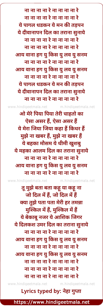 Lyrics of Na Na Na, Na Re - ना ना ना, ना रे