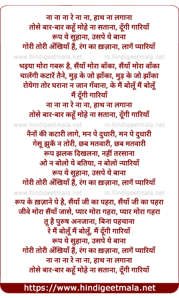 Lyrics of Na Na Na Re Ana Na, Haath Na Lagana - ना ना ना रे ना ना, हाथ ना लगाना