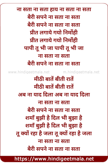 Lyrics of Na Satha Bairi Sapne Na Satha - ना सता ना सता हाय ना सता ना सता