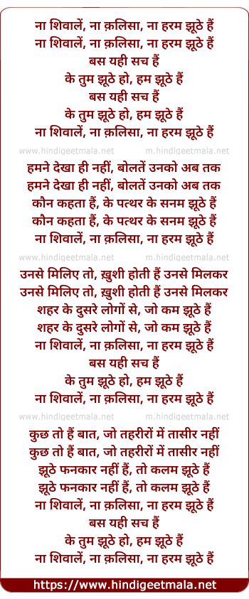 Lyrics of Na Shivale Na Kalisa Na Haram - ना शिवालें, ना क़लिसा, ना हरम झूठे हैं