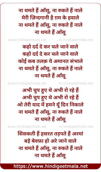 Lyrics of Na Thamte Hain Aansu - ना थमते हैं आँसू