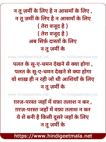 Lyrics of Na Tu Zameen Ke Liye Hai Na Aasmaan Ke - ना तू ज़मीं के लिए है ना आसमाँ के