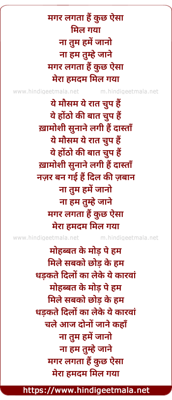 Lyrics of Na Tum Hamein Jaano - मगर लगता हैं कुछ ऐसा