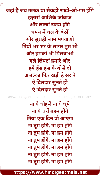 Lyrics of Na Tum Honge Na Hum - जहां है जब तलक या सैकड़ो शादी-ओ-गम होंगे