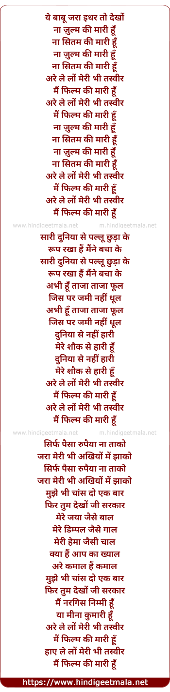 Lyrics of Na Zulm Ki Mari Hu - ना ज़ुल्म की मारी हूँ