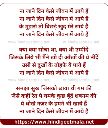 Lyrics of Naa Janey Din Kaise Jivan Me Aaye Hain - ना जाने दिन कैसे जीवन में आये हैं