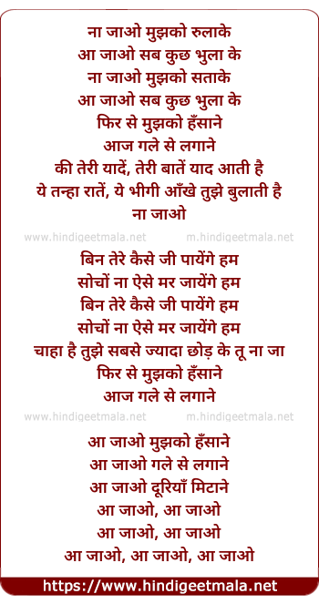 Lyrics of Naa Jao Mujhko Rulake - ना जाओ मुझको रुलाके