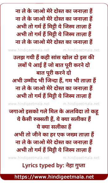 Lyrics of Na Le Ke Jao, Mere Dost Ka Janaja Hai - ना ले के जाओ, मेरे दोस्त का जनाज़ा हैं