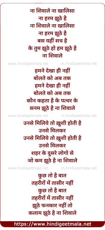 Lyrics of Naa Shivaale, Naa Khalisaa, Naa Haram Jhuthe Hain - ना शिवाले, ना खालिसा, ना हरम झूठे है