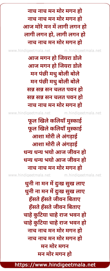 Lyrics of Naach Naach Mann Mor Magan Ho - नाच नाच मन मोर मगन हो