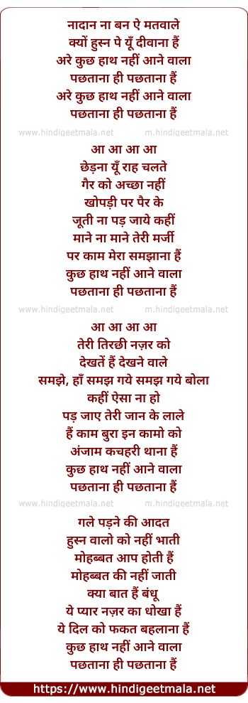 Lyrics of Naadan Na Ban Ae Matwale - नादान ना बन ऐ मतवाले
