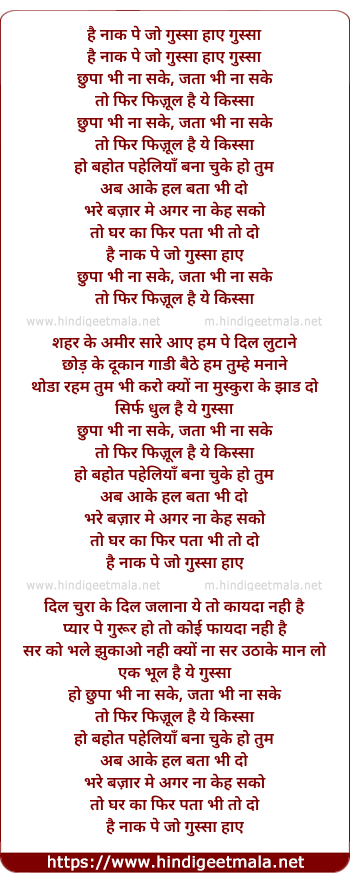 Lyrics of Naak Pe Gussa - नाक पे गुस्सा
