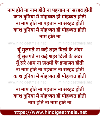 Lyrics of Naam Hota Na Pehchan - नाम होते ना पहचान
