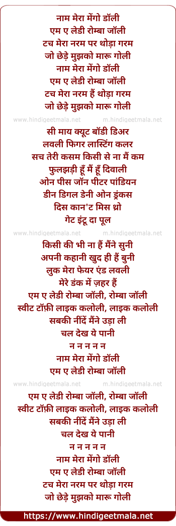 Lyrics of Naam Mera Mango Dolly - नाम मेरा मेंगो डॉली