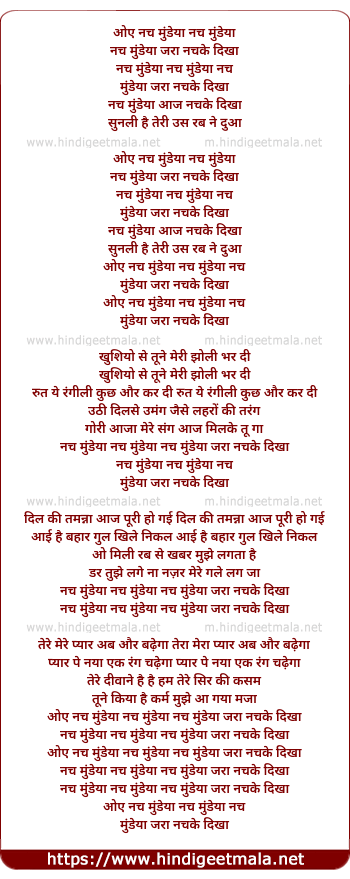 Lyrics of Nach Mundeya Nach Mundeya - नच मुंडेया नच मुंडेया